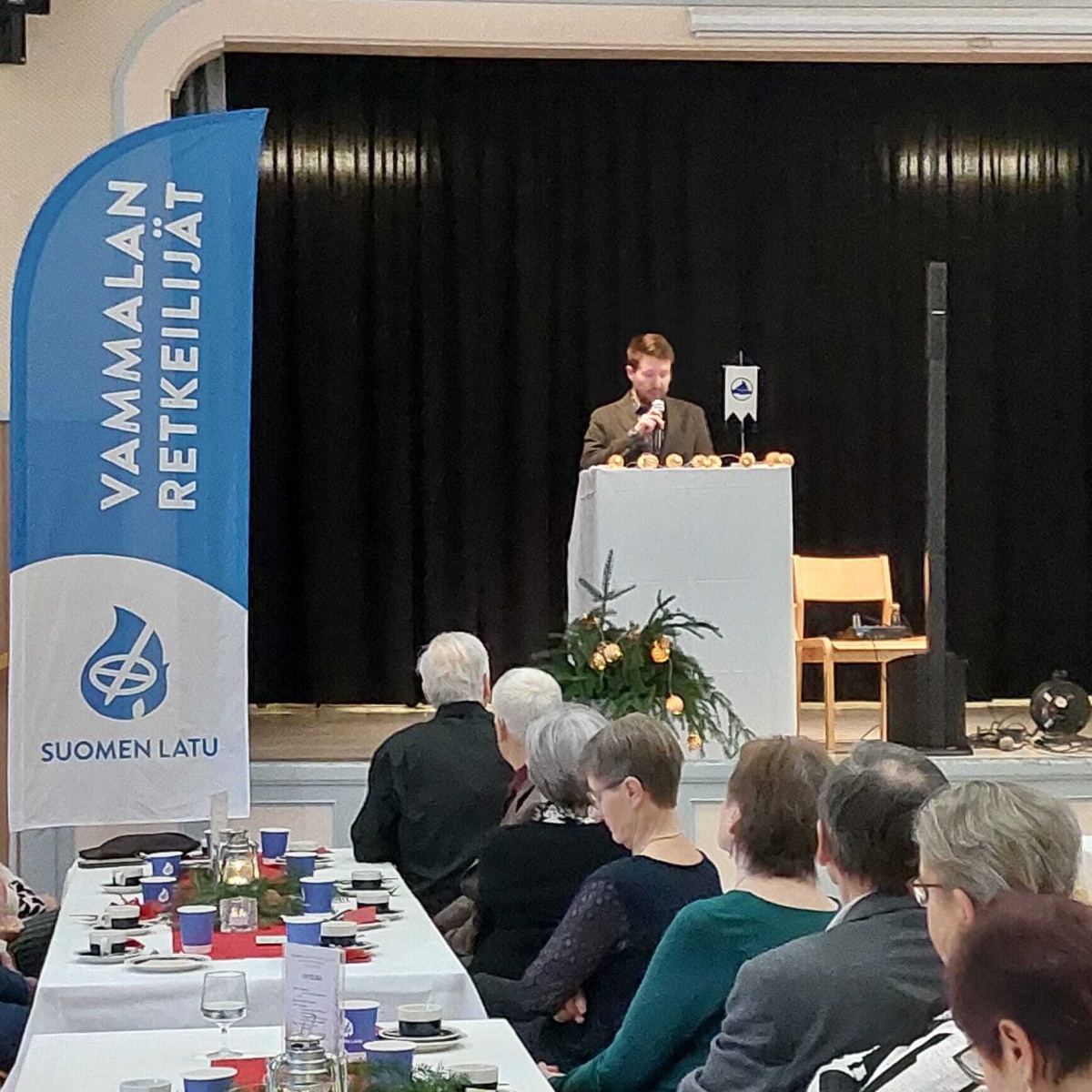 Vammalan Retkeilijät ry juhli 40-vuotista taivaltaan lämminhenkisessä juhlassa lauantaina 15.11. Vammalan Seuratalolla, Seukulla. Juhla kokosi yhteen yhdistyksen jäseniä, yhteistyökumppaneita ja kutsuvieraita. Merkkipäivänä saaduilla muistamisilla edistetään lasten, nuorten ja perheiden hyvinvointia paikkakunnalla, varat lahjoitettiin MLL Tyrvään-Vammalan yhdistykselle. Juhlatilaisuudessa Suomen Ladun hallitusjäsen ja 1. varapuheenjohtaja Jussi-Pekka Arkkola toi juhlaan tervehdyksensä ja kiitti Vammalan Retkeilijöitä aktiivisuudesta niin yhdistys- kun järjestötasolla. Sastamalan kaupungin tervehdyksen toivat kaupungin liikunta- ja nuorisopalvelupäällikkö Tiina Haronoja ja liikuntapaikkamestari Jari Aho. Myös Tiina kiitti juhlapuheessa Retkeilijöitä aktiivisesta toiminnasta kaupunkilaisten hyvinvoinnin edistämisessä sekä hyvästä yhteistyöstä. Puheiden jälkeen yksi perustajajäsenistä, monelle paikkakuntalaiselle tuttu, Rauno Jalkanen, kertoi yhdistyksen perustamisesta ja alkutaipaleesta. Retkeilijöiden toiminnassa pitkään aktiivisesti mukana olleet, ja edelleen mukana olevat, Helena Heikkilä ja Merja Mahlamäki jutustelivat rennosti "Ritajärven nuotiolla" muistellen retkiä ja reissuja vuosien varrelta. Musiikkiesityksistä vastasivat Sofia ja Iida sekä Jenna ja Jere Duo.