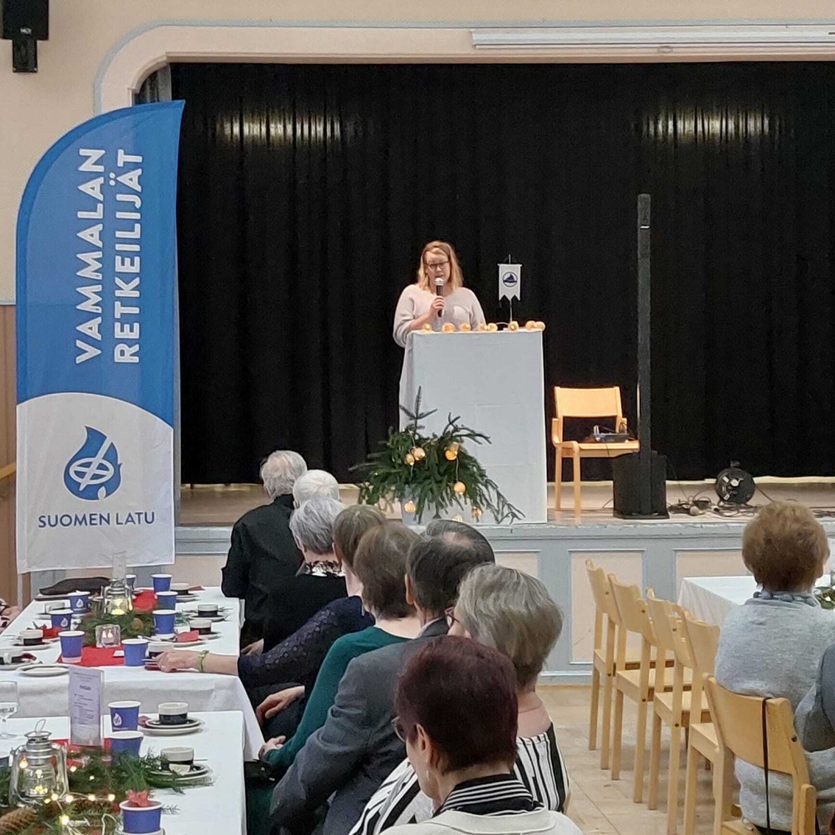 Vammalan Retkeilijät ry juhli 40-vuotista taivaltaan lämminhenkisessä juhlassa lauantaina 15.11. Vammalan Seuratalolla, Seukulla. Juhla kokosi yhteen yhdistyksen jäseniä, yhteistyökumppaneita ja kutsuvieraita. Merkkipäivänä saaduilla muistamisilla edistetään lasten, nuorten ja perheiden hyvinvointia paikkakunnalla, varat lahjoitettiin MLL Tyrvään-Vammalan yhdistykselle. Juhlatilaisuudessa Suomen Ladun hallitusjäsen ja 1. varapuheenjohtaja Jussi-Pekka Arkkola toi juhlaan tervehdyksensä ja kiitti Vammalan Retkeilijöitä aktiivisuudesta niin yhdistys- kun järjestötasolla. Sastamalan kaupungin tervehdyksen toivat kaupungin liikunta- ja nuorisopalvelupäällikkö Tiina Haronoja ja liikuntapaikkamestari Jari Aho. Myös Tiina kiitti juhlapuheessa Retkeilijöitä aktiivisesta toiminnasta kaupunkilaisten hyvinvoinnin edistämisessä sekä hyvästä yhteistyöstä. Puheiden jälkeen yksi perustajajäsenistä, monelle paikkakuntalaiselle tuttu, Rauno Jalkanen, kertoi yhdistyksen perustamisesta ja alkutaipaleesta. Retkeilijöiden toiminnassa pitkään aktiivisesti mukana olleet, ja edelleen mukana olevat, Helena Heikkilä ja Merja Mahlamäki jutustelivat rennosti "Ritajärven nuotiolla" muistellen retkiä ja reissuja vuosien varrelta. Musiikkiesityksistä vastasivat Sofia ja Iida sekä Jenna ja Jere Duo.